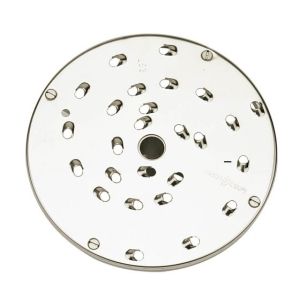 Диск-тёрка Robot Coupe 28016 (7 мм) совместим с овощерезками CL50, CL50 Gourmet, CL50 Ultra, CL52, CL55, CL60 и кухонными процессорами R502, R652. Предназначен для измельчения крупной стружкой овощей, фруктов, орехов, варёных яиц, сыра, шоколада и других продуктов для приготовления закусок, салатов, десертов, первых и вторых блюд. Устанавливается в рабочий отсек оборудования на вал двигателя. После работы легко снимается и очищается без использования дополнительных инструментов. Изготовлен из алюминия.