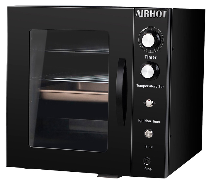 Электрическая печь‑коптильня для горячего и холодного копчения мяса, рыбы, птицы, колбас, сыров и других продуктов. Модель оснащена рабочей камерой с левосторонней распашной дверью и электромеханической панелью управления (расположена в правой части фронта). Корпус изготовлен из нержавеющей стали марки AISI 201, полки — из металла с хромированным покрытием. Оборудование позволяет регулировать температуру во внутреннем объёме с помощью термостата с поворотным переключателем, настраивать длительность приготовления (максимум 12 ч) с автоматическим отключением по завершении цикла. Предусмотрены активация предварительного разогрева и освещения камеры, вытяжное отверстие на задней стенке и большое смотровое окно для визуального контроля процесса. В комплект входят 2 решётчатые полки, направляющий лоток, поддон для сбора жира и ящик для древесной щепы. Максимальная суточная производительность для мяса — 10 кг.