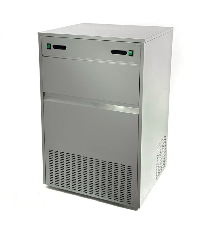 Корпус выполнен из нержавеющей стали. Производительность составляет 120 кг льда в сутки, за один цикл (18 минут) вырабатывается 24 порции льда. Модель оснащена бункером для хранения вместимостью 50 кг. Воздушное охлаждение и использование хладагента R290 способствуют энергоэффективной и надёжной работе оборудования.