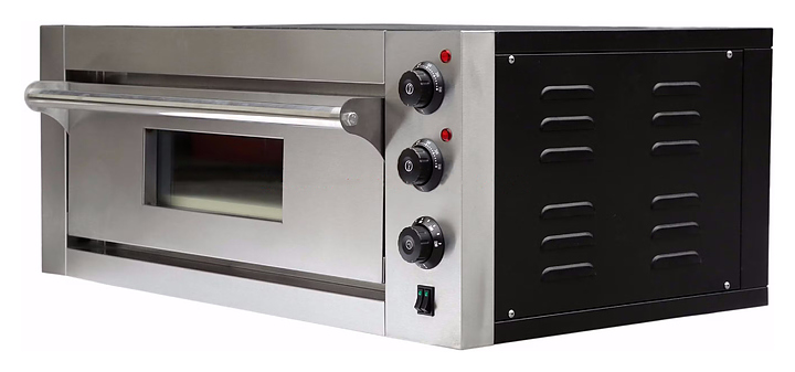 Профессиональная печь для приготовления пиццы в заведениях общепита — пиццериях, кафе, ресторанах и сезонных точках продаж. Модель HKN‑HEP1E отличается компактными размерами и простотой обслуживания. Оснащена электромеханической панелью управления и термостатами для контроля температуры в рабочей камере в диапазоне от +100 ∘C до +350 ∘C. Печь имеет одну камеру, рассчитана на приготовление одной пиццы диаметром 430 мм. Работает от электросети, устанавливается на стол. Мощность устройства — 4,2 кВт при напряжении 230 В.