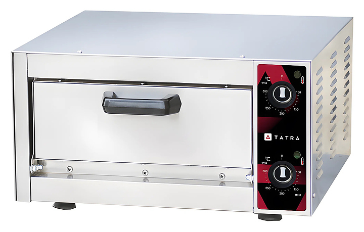 Профессиональная печь для выпекания пиццы, осетинских пирогов, лепёшек и других хлебобулочных изделий, не требующих пароувлажнения. Корпус выполнен из оцинкованной стали, камера — из алюминизированной стали, дверь — из нержавеющей стали. В нижней части камеры установлен шамотный камень из огнеупорной глины (толщина 14 мм), обеспечивающий равномерный прогрев продукции за счёт накопления тепла. Печь оснащена электромеханической панелью управления с независимой регулировкой температуры нагрева низа и верха камеры. Рабочий температурный диапазон — от +100 °C до +300 °C.