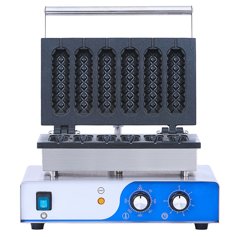 Вафельница Viatto VKD-6 предназначена для использования на предприятиях питания и торговли и подходит для приготовления корн-догов - сосисок в хрустящем тесте, вафель (в том числе с различными начинками). Корпус вафельницы изготовлен из нержавеющей стали, рабочие поверхности — из чугуна с антипригарным покрытием. Модель имеет таймер и терморегулятор. Температурный диапазон от +50°С до +300°С.