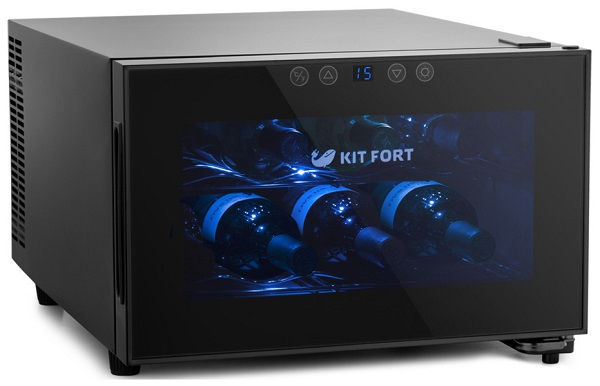 Винный шкаф Kitfort КТ-2403 - это холодильник для хранения вина в бутылках. В винном шкафу имеются восемь лотков для укладки бутылок, расположенных на двух полках. Дверца шкафа прозрачная, в ее верхней части расположена сенсорная панель управления со светодиодным дисплеем. Охлаждение производится при помощи термоэлементов Пельтье, поэтому в винном шкафу не используется никаких вредных хладагентов, а уровень шума меньше, чем у компрессорных холодильников, и отсутствуют вибрации. Рабочий температурный диапазон винного шкафа выставляется в пределах от 8 °С до 18 °С с шагом в 1 °С.