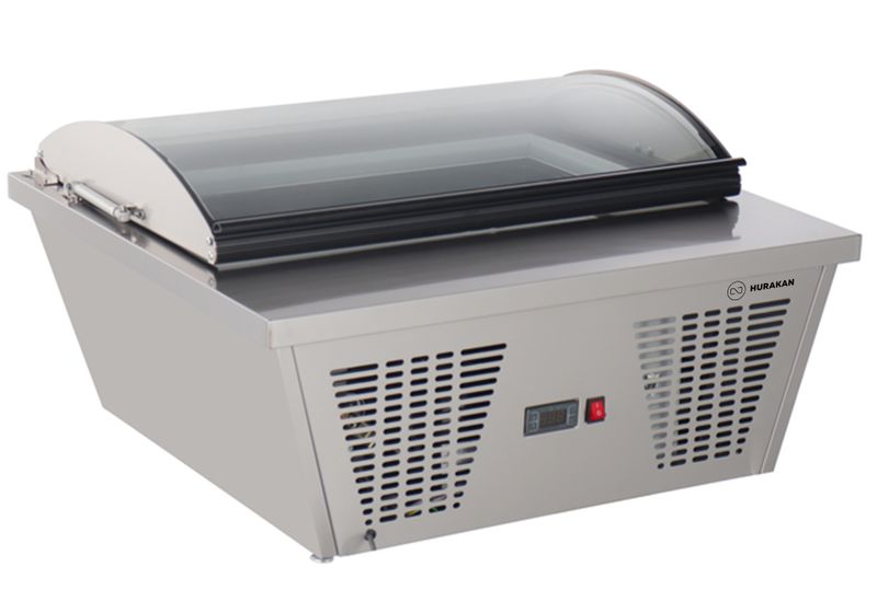 Витрина HURAKAN HKN-ICS87 предназначена для демонстрации и хранения мороженого, сорбета и йогурт-мороженого на предприятиях общественного питания и торговли. Конструкция выполнена из нержавеющей стали и стекла. Модель комплектуется четырьмя гастроёмкостями объёмом 5 л (335×140×115 мм). Хладагент — R290.